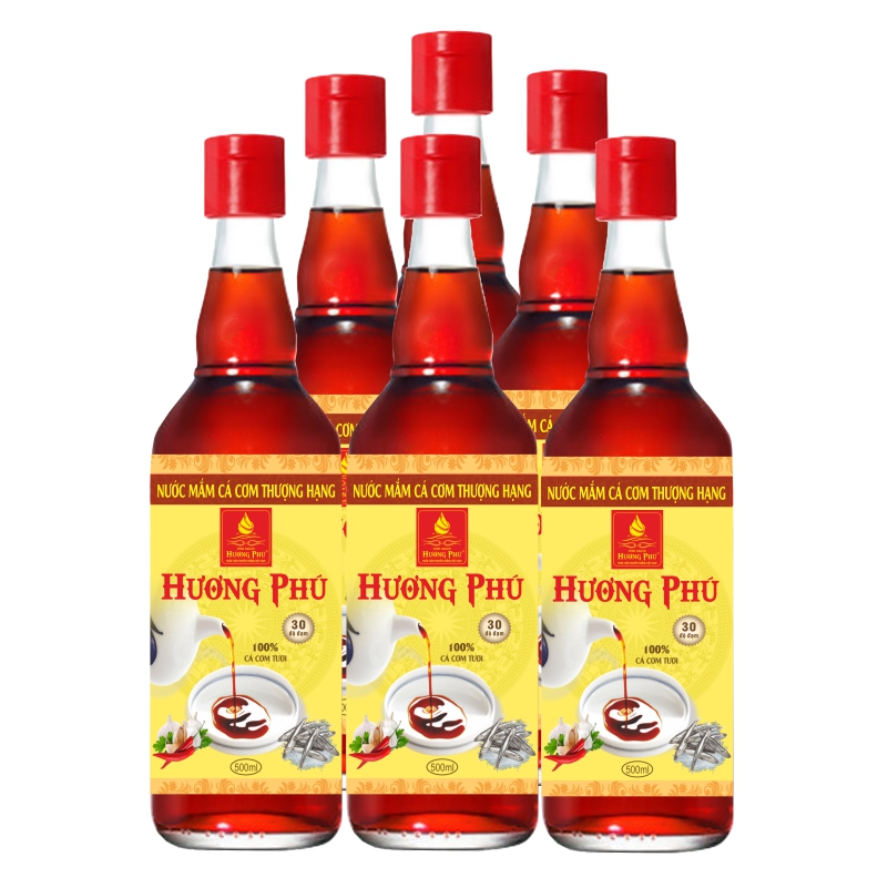 Thùng 06 chai nước mắm thượng hạng HƯƠNG PHÚ 30 độ đạm - 500ml
