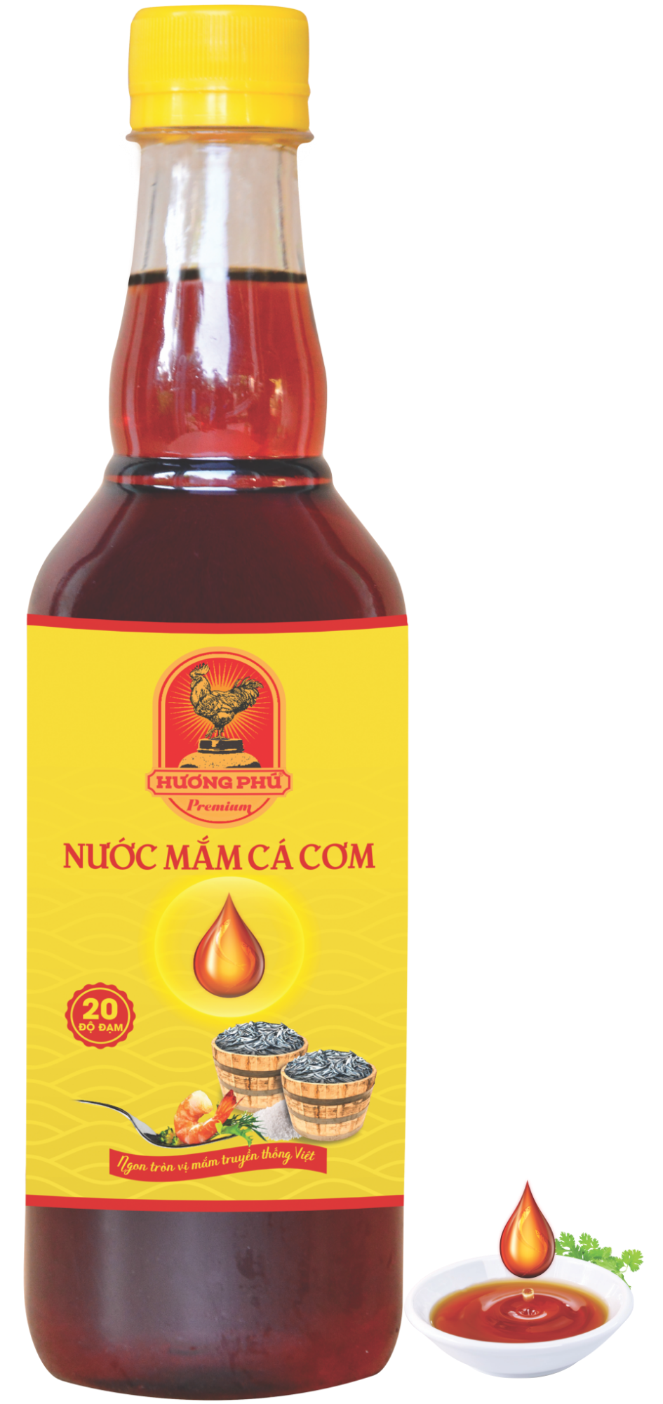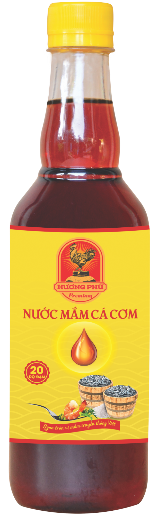 Nước mắm cá cơm HƯƠNG PHÚ 20 độ đạm được làm từ 100% cá cơm tươi và muối ủ chượp bằng phương pháp truyền thống tạo nên nước mắm cá cơm sánh đặc, màu cánh gián đẹp mắt, hương vị đậm đà đặc trưng của xứ Hoa vàng Trên Cỏ Xanh - Phú Yên.